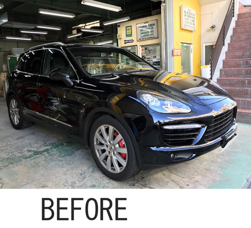 PORSCHE CAYENNE TURBO 958にWALDさんのSPORTS LINE BLACK BISON EDITION塗装・取付と2色塗り分け、フロント、リア、ディライト配線加工、ルーフレール塗装させていただきました、この度はありがとうございました、また何かあればよろしくお願いします。