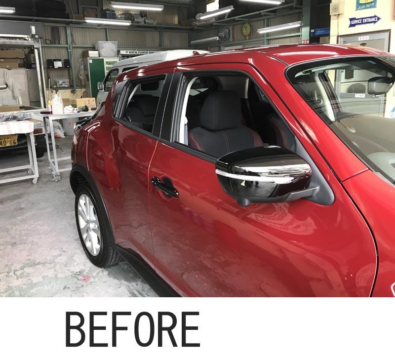 日産JUKE にホシノインパルさんのエアロバイザーを取り付けさせていただきました、この度はありがとうございました。また機会があればよろしくお願いします。