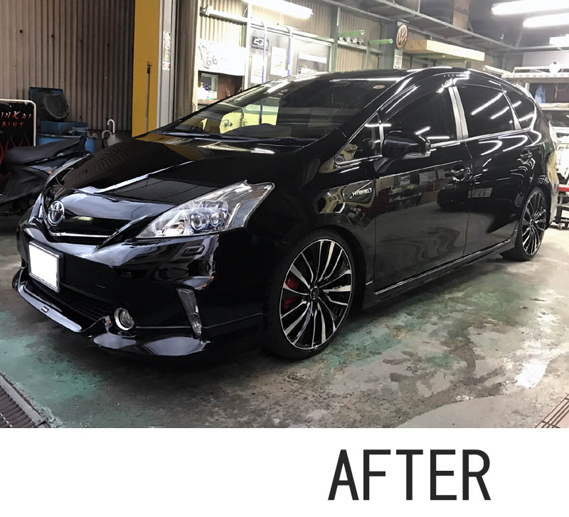 プリウスα zvw41 にキャリパー塗装とTEINのフレックスZの車高調をとりつけ、フォグライトLED取替、リアリフレクターLED取替をしていただきました! この度はありがとうございました。 また何かあればよろしくお願いします。